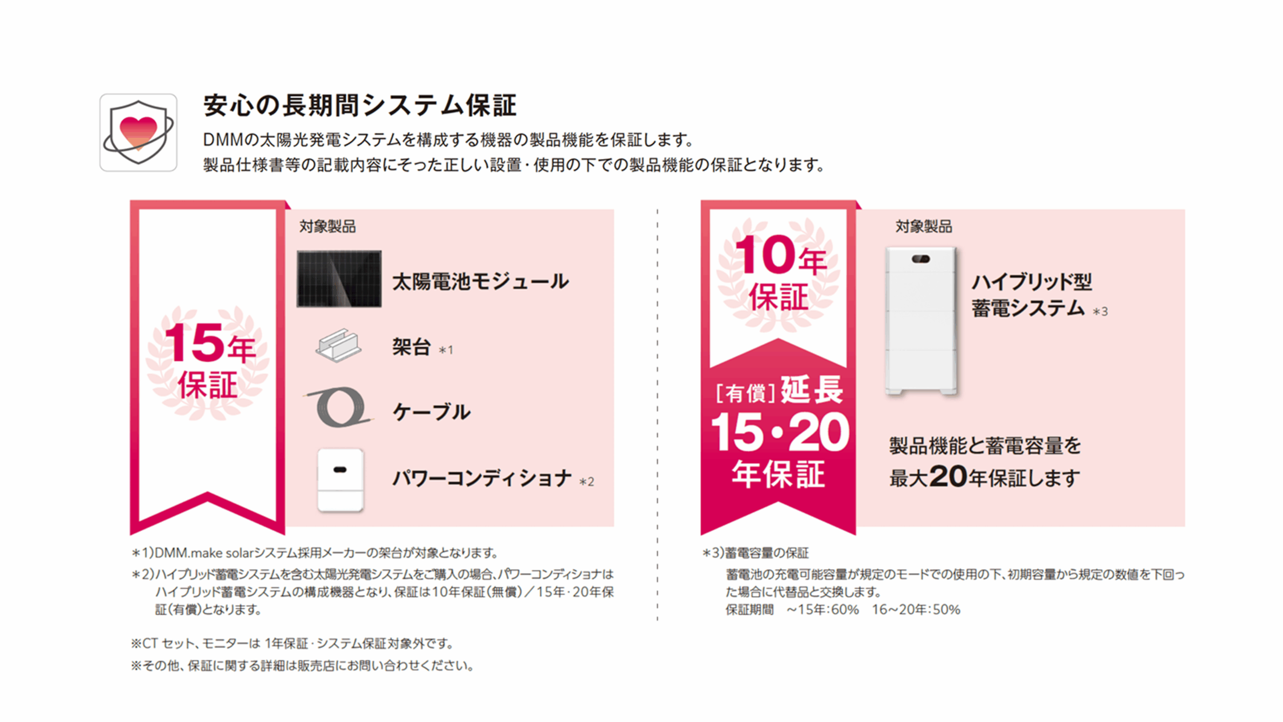 さらに、他の保証も充実していて、パネル自体の製品保証が25年、システム全体の保証が15年、自然災害への補償もついています。台風とか落雷、そういった予期せぬ災害に対しても一定の補償があるのは、うれしいポイントです。長く安心して使いたい方にとって、満足できる保証内容になってます!