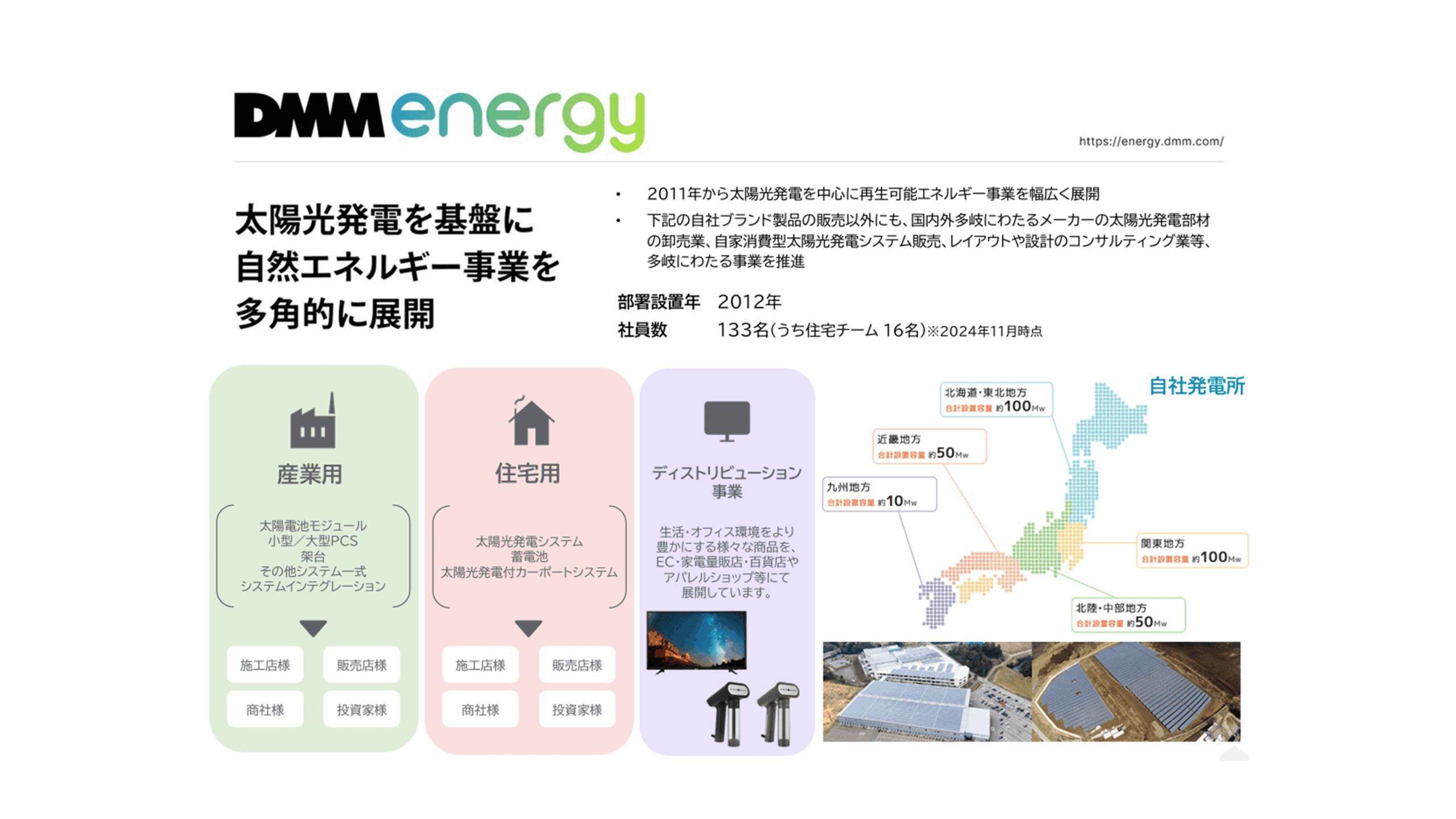 では次に、そのDMMが再生可能エネルギーの分野でどのような取り組みをしているのか、「DMMエナジー」という部門についてご紹介していきましょう。