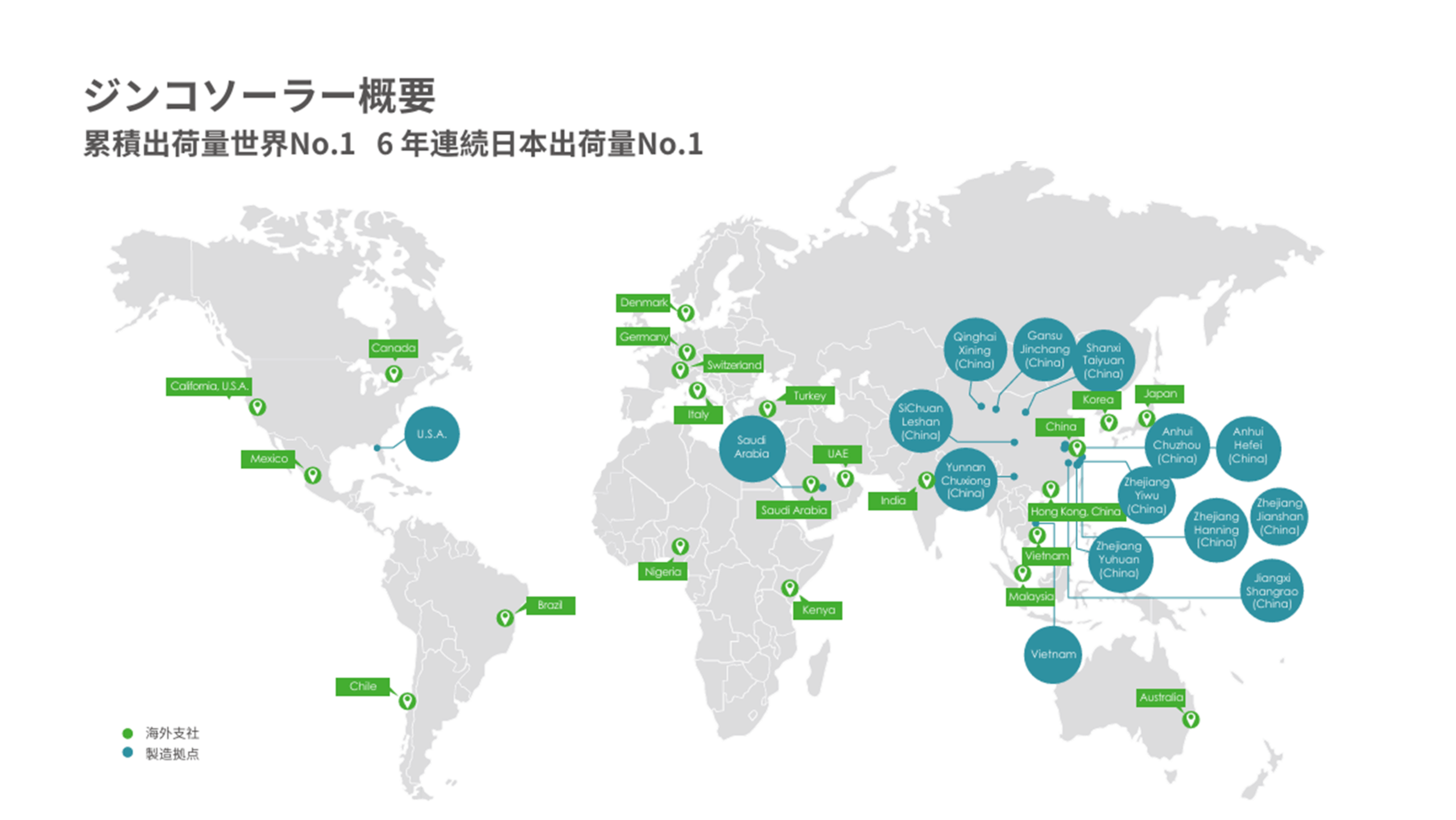 ジンコソーラーの製品は、アメリカ・ヨーロッパ・オーストラリア・日本など、なんと160か国以上で販売されており、まさに世界中で選ばれているメーカーです。