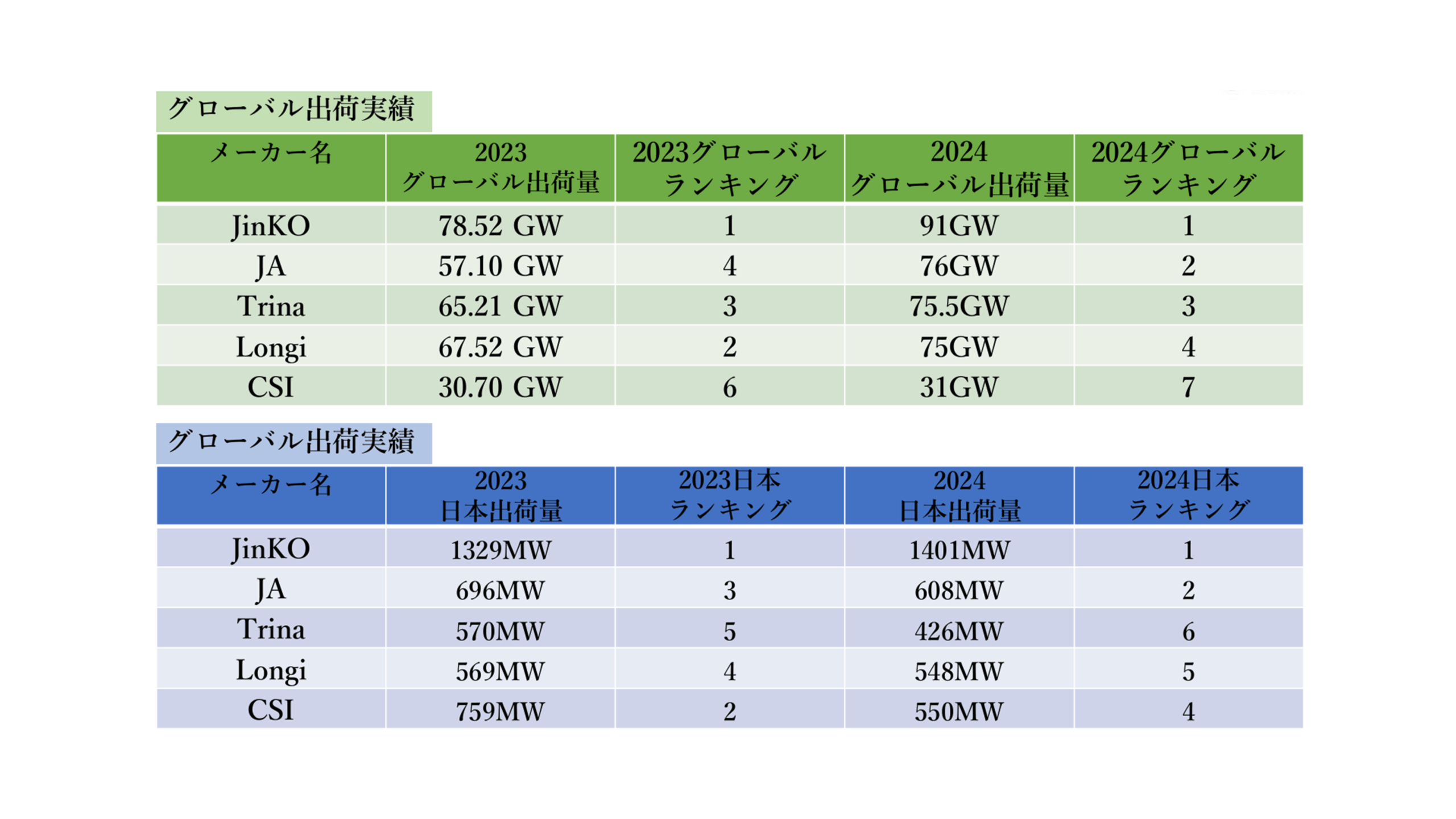 「ジンコ」と聞くとあまりなじみがないかもしれませんが、実はこの会社、太陽光業界では超有名な存在で、2024年には1年間で91GW分のパネルを出荷して世界No.1に輝いています。