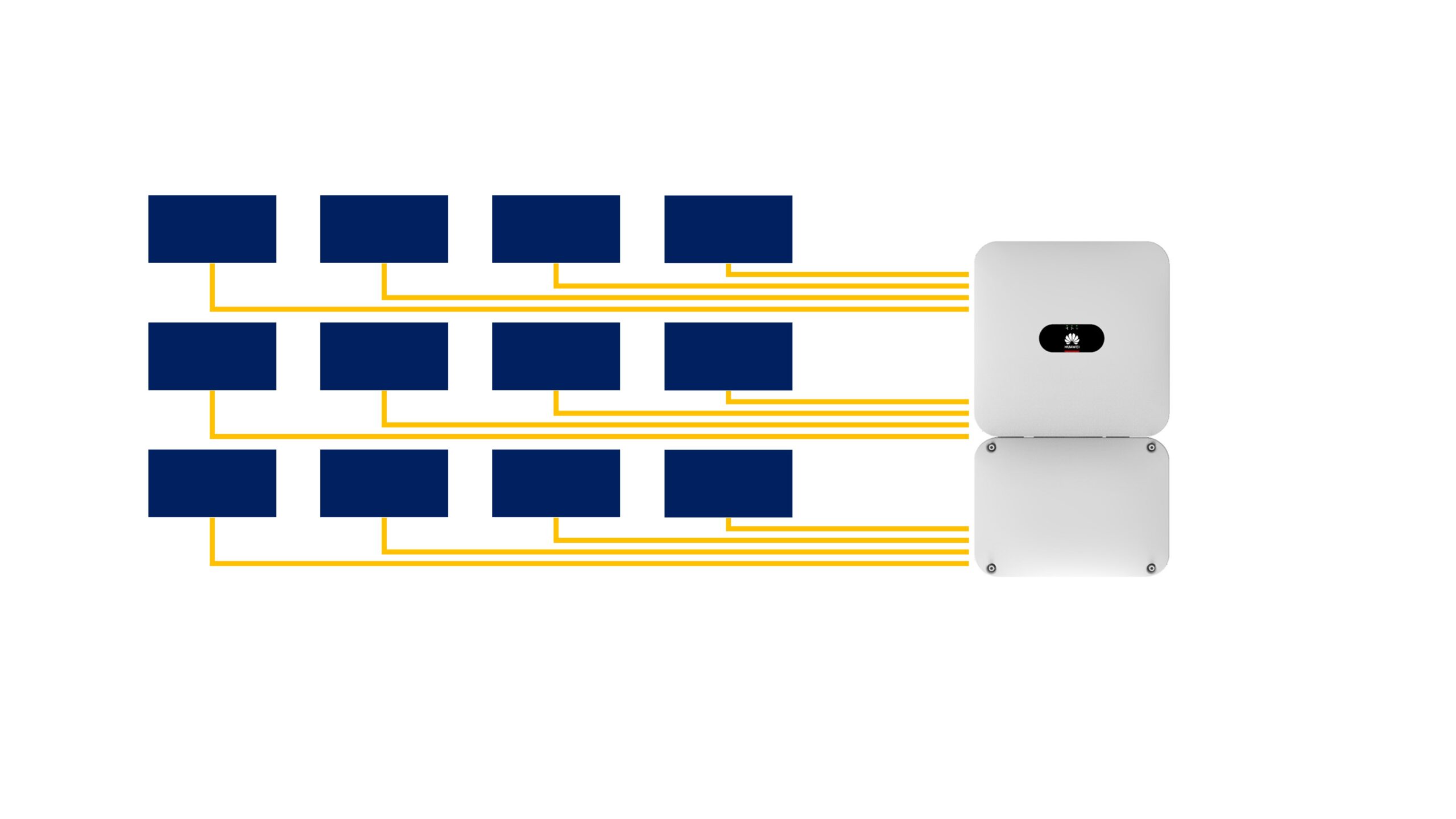 パワコンには、入力回路数、端子数が決まっており、すべてのパネルを1枚ずつバラバラに管理することはできません。そのため、複数枚のパネルをまとめて直列に接続し、ひとつの入力回路として扱う必要があります。