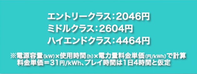 最後に、最近ご相談が増えている「ゲーミングPCの電気代」についてお話します。太陽光発電や蓄電池のご相談を受ける中で、「子どもが夜ゲームをするようになってから、電気代が急に高くなった」という声をよく聞くようになりました。実は、ゲーミングPCというのは、普通のパソコンと比べて高性能なCPUやGPUを搭載している分、消費電力がとても大きいです。それに加えて、夏場はゲーム中にエアコンもつけっぱなしにするご家庭が多いため、電気の使用量が一気に跳ね上がります。特に問題なのが「夜から朝方」にかけての時間帯に使用が集中することです。蓄電池をお使いであれば、昼間に貯めた電気を夜に使うことになりますが、ゲーム+エアコンという組み合わせは、エコキュートの沸き上げと同じくらいの電気を消費してしまうこともあります。