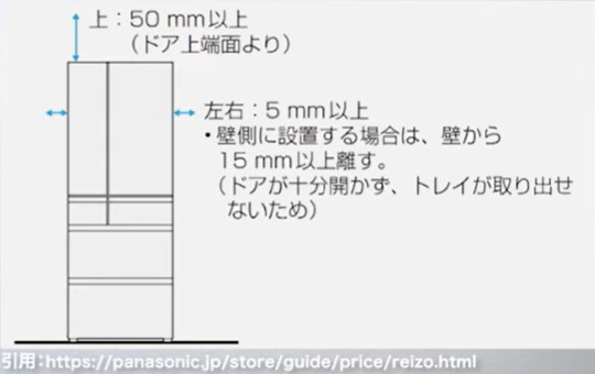 次のポイントは設置場所です。冷蔵庫の置き方ひとつで、電気代が大きく変わることをご存知でしょうか?冷蔵庫は庫内を冷やすために、背面や側面から熱を放出しています。壁にぴったりくっつけてしまうと、この放熱がスムーズにできなくなって、無駄な電力を消費することになります。冷蔵庫の上部・側面が壁に接している場合と、適切な間隔を空けた場合を比較すると、年間で約45kWhの節電となり、約990円も節約できます!設置時の推奨間隔は、側面0.5cm以上、上部5cm以上です。十分なスペースを確保することが重要です。