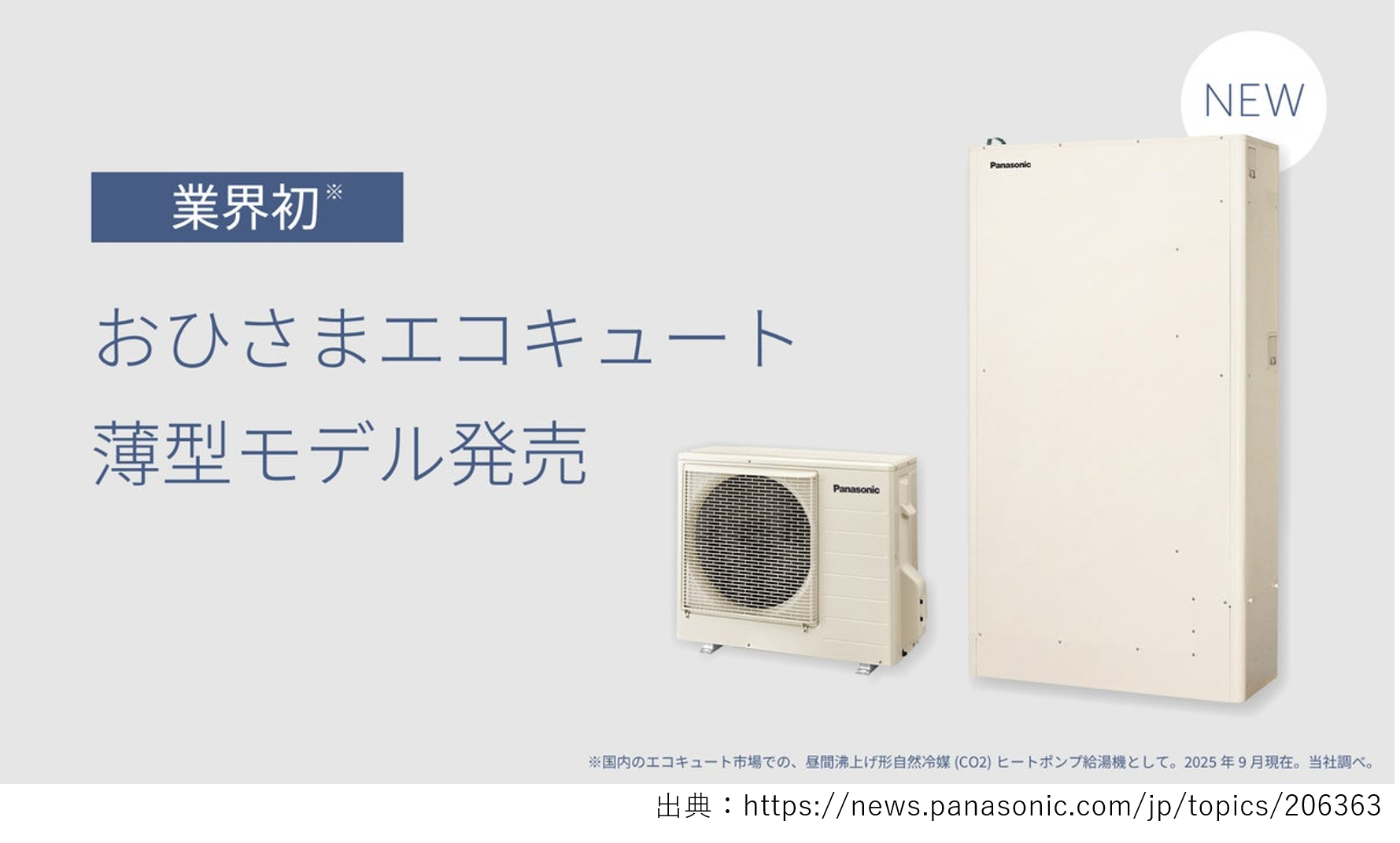 しかし、今回ついに薄型モデルの登場で、その悩みが解消されます。このブログでは、「薄型おひさまエコキュート」がどんな特徴を持っているのか、そしてこれまで導入できなかった方にこそおすすめできる理由を、販売店の立場からわかりやすく解説していきます!