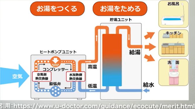 ここからは、エコキュートについて、実際のコストや使い勝手を中心に見ていきましょう。エコキュートは、非常に高効率な給湯器として知られています。従来の電気温水器やガス給湯器に比べると、お湯を沸かすときに必要なエネルギーが大幅に少なくて済みます。