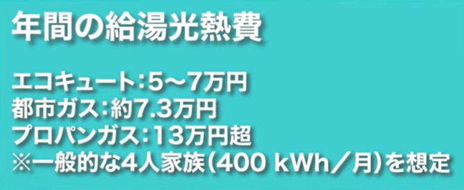 また、最近は「エコジョーズ」という省エネ型の機種も普及しています。お湯をつくるときに発生する排気熱を再利用して効率を高める仕組みで、従来のガス給湯器よりも燃費が良くなっています。では、実際のコストを見てみましょう。都市ガスを使っているご家庭では、年間の光熱費はおよそ7万円前後。一方で、プロパンガスの場合は地域によって価格差が大きく、年間10万円を超えることも珍しくありません。