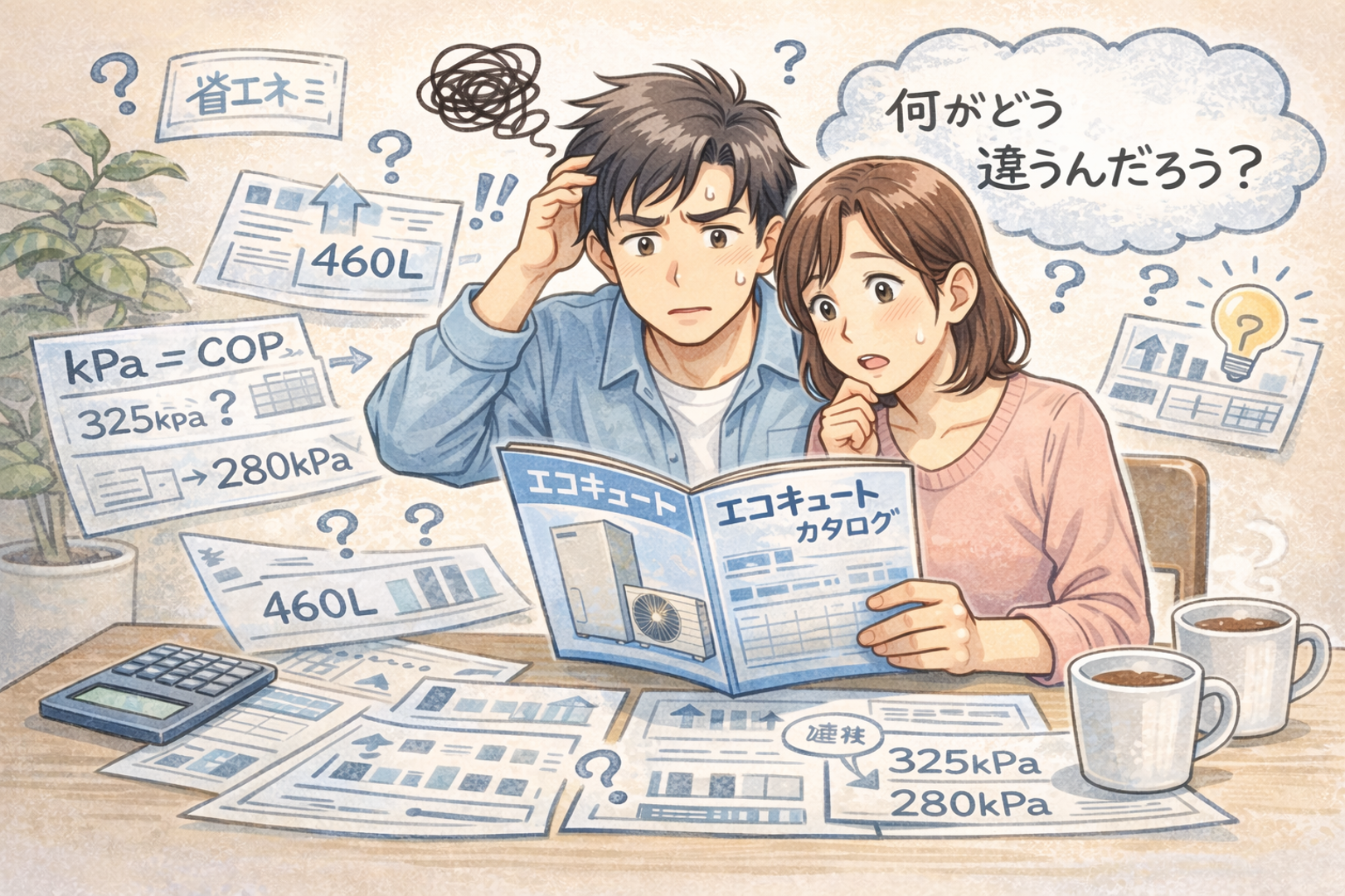 カタログを見ても、見慣れない言葉や数字が並んでいて、正直、何が違うのかよくわからない。しかも、毎日使うものだから失敗したくない。「今まで通りお湯が出ればいい」そう思っていたのに、調べ始めるといろんな特徴や数字が出てきて、つい難しく考えてしまいます。