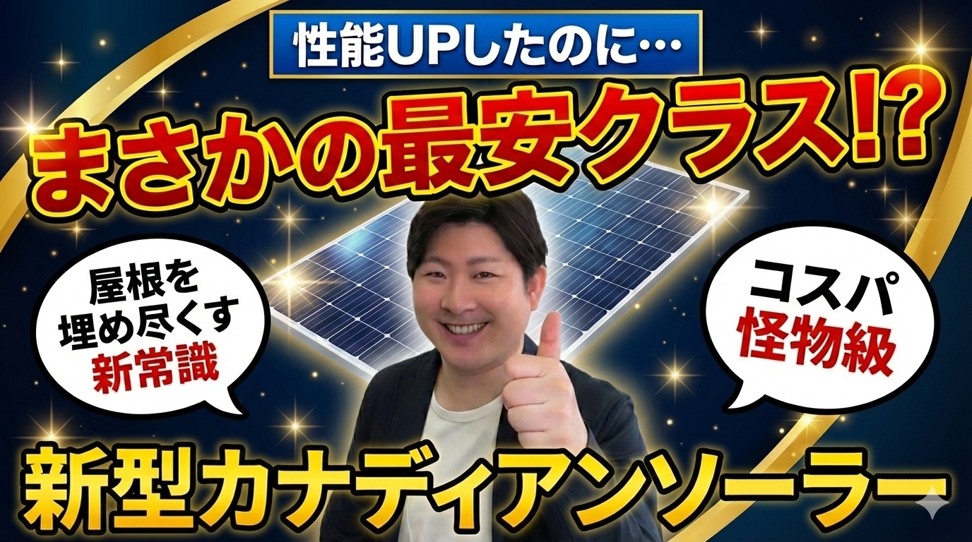 「知らないまま契約すると、数10万円損する可能性があります」 世界最大手カナディアンソーラーから待望の最新モデルが登場しました。 従来モデルと同じサイズでありながら、発電性能を極限まで高めた「真の完成形」。弊社取り扱いパネルの中で**「最安クラス」**でありながら、高価なハイエンドモデルに匹敵する実力を持ちます。