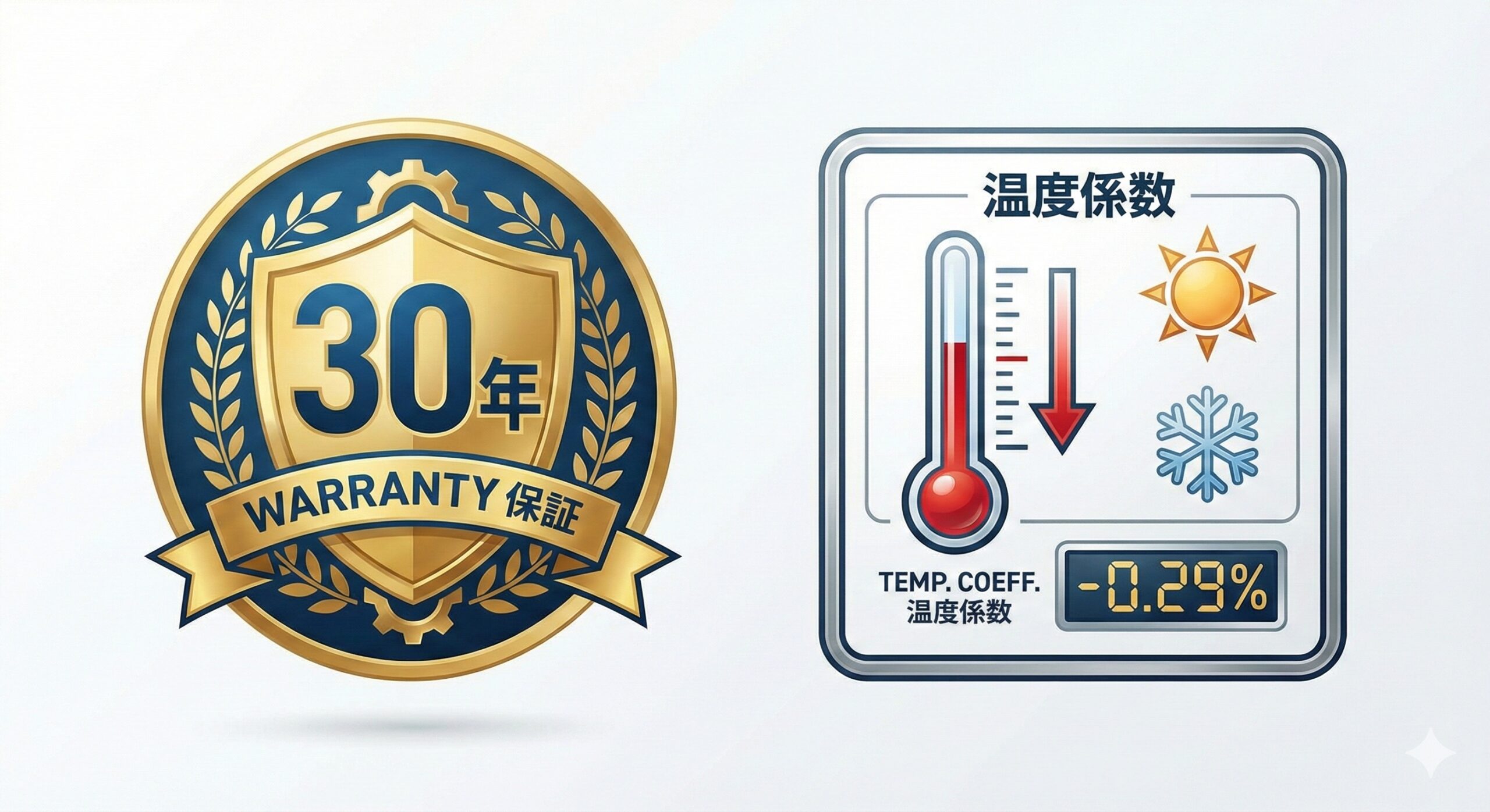 温度係数 -0.29%/℃: 日本の猛暑でも発電量が落ちにくい熱への強さ。